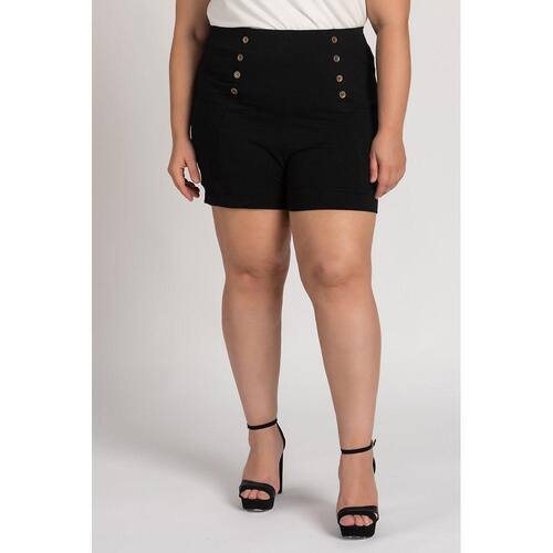 Bermuda feminina plus size elaborada em moletinho. Possui elasticidade, toque macio, peça leve. Cós largo, detalhes de costura e aplique de botões não funcionais que dão aquele charme e diferencial a peça. Do look chique ao esportivo, para o dia ou noite, trabalhar, passear ou curtir aquele dia de folga, use a imaginação e abuse da versatilidade desta peça.