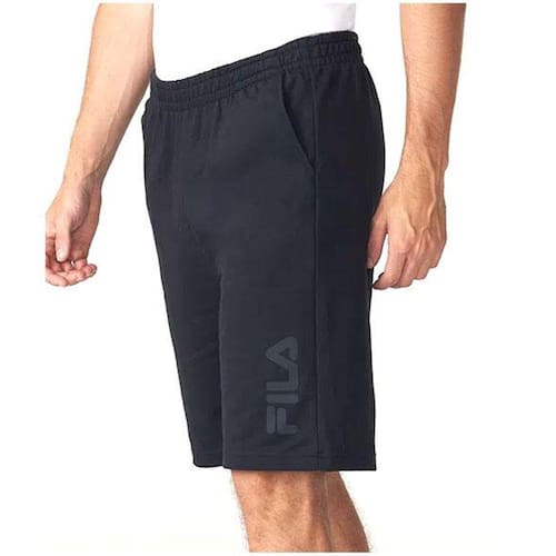 Possui estampa Fila Letter vertical na lateral esquerda próxima à barra.