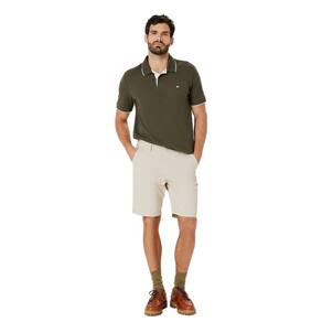 Bermuda básica masculina chino em sarja, a clássica indispensável no guarda-roupa. Elaborada em sarja de algodão, possui modelagem regular e comprimento acima do joelho.