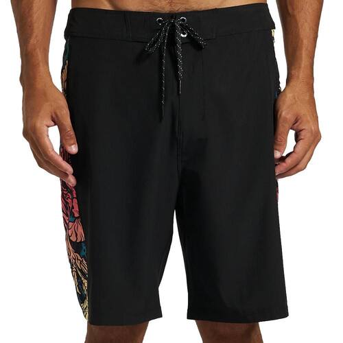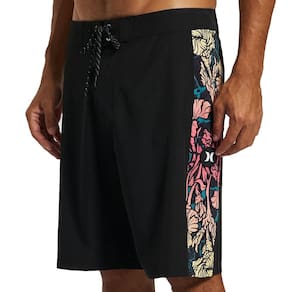 Bermuda Hurley com recortes nas laterais sublimado, cós interno sublimado, patch ICON na lateral, bolso traseiro embutido na lateral e puxador com elástico.