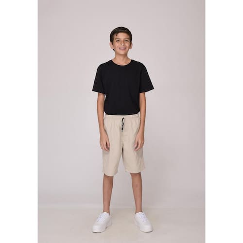 Bermuda Juvenil com elástico e cordão na cintura, bolso traseiro.