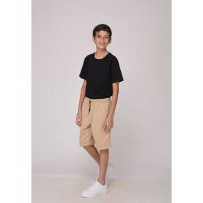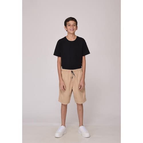 Bermuda Juvenil com elástico e cordão na cintura, bolso traseiro.