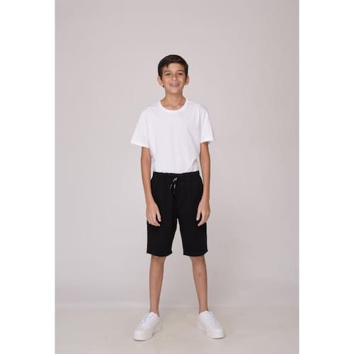 Bermuda Juvenil com elástico e cordão na cintura, bolso traseiro.
