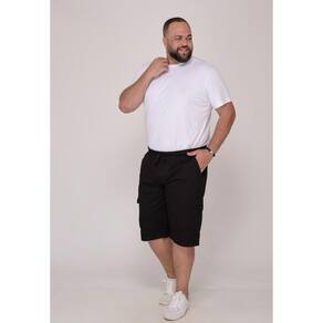 Bermuda Macaw 7784 Preto Elástico Plus Size Sarja [F075] - Preto - EXG