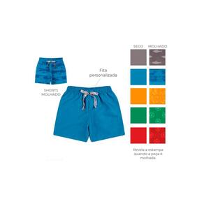Tem modelagem tradicional, estampa rotativa, cós de elástico e cordão de amarrar.