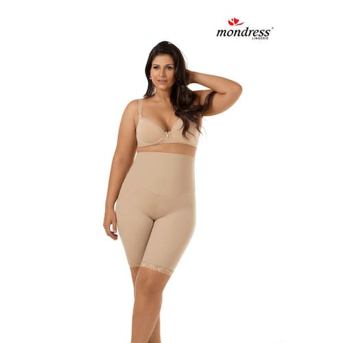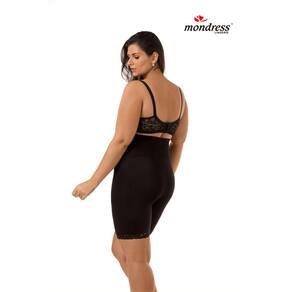 Cinta Modeladora com Cós Duplo e Perna Plus Size Mondress. Desenha a silhueta, reduz medidas, comprime a barriga e o culote, modela o quadril, esconde a flacidez e a celulite e ainda funciona como forro. Possui cós duplo largo para maior compressão da barriga. Fita de renda com silicone interno na perna para não enrolar e marcar sob a roupa.