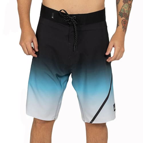 Bermuda QuikSilver feita em tecido 2Way, elasticidade para os dois lados, repelente à água, cós duplo do prórprio tecido, cordão chato especial, bolso lateral com fechamento em zíper invertido anti corrosivo, etiqueta aplicada na perna esquerda e tecido telado no interno do bolso com aplicação de elástico para chaves.