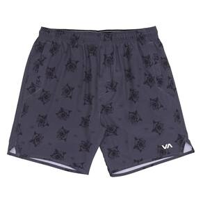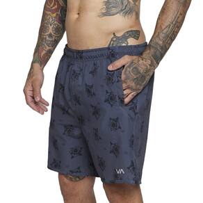 Bermuda Rvca feita em tecido de alta elasticidade, comprimento de 17 polegadas, cordão e elástico personalizado interno de ajuste no cós, bolsos laterais embutidos, estampa sublimada full print, estampa na perna frente e etiquetas personalizadas.