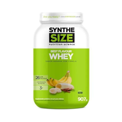 Best Flavour Whey Synthesize 907G - Banana Com Canela A best flavour whey da synthesize é um hiperprotéico único com pedaços de frutas liofilizadas e as três principais proteínas do mercado: concentrada (wpc), isolada (wpi) e hidrolisada (wph), reunidas em um único produto, o pós-treino mais saboroso da categoria. A best whey flavour possui 65% de proteína concentrada, isolada e hidrolisada do leite, zero glúten e rico em aminoácidos essenciais e não essenciais, que auxilia no ganho de massa muscular. Produto dispensado da obrigatoriedade de registro conforme resolução RDC27/2010(ANVISA).