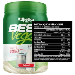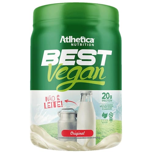 Best Vegan Proteina 500g Atlhetica NutritionDESCRIÇÃOBest VEGAN®?, uma proteína vegana que chega ao mercado seguindo o mesmo conceito de sabor EXCEPCIONAL da marca, com 20 g de proteínas por dose e derivadas de fontes vegetais como Proteína Isolada da Ervilha, Proteína Concentrada do Arroz, Proteína Concentrada da Semente de Abóbora e Proteína da Chia, além de outros ingredientes fantásticos!Outra inovação é o seu forte apelo sustentável, sua embalagem inédita no mercado de suplementos MUNDIAL: é produzida com polietileno verde I'M GREEN®?!O que é o IOM GREEN®??É um bioplástico desenvolvido a partir da cana de açúcar, matéria prima renovável, que colabora para redução da emissão dos gases causadores do efeito estufa, além de ser 100% reciclávelO suplemento de proteína vegetal tem ganhado cada vez mais adeptos. A proteína de ervilha, arroz, semente de abóbora e chia é uma ótima opção para substituir o whey protein, pois fornece a mesma qualidade de aminoácidos e é uma boa alternativa para intolerantes à lactose.BENEFÍCIOSProteína isolada da ervilha, proteína concentrada do arroz, semente de abóbora e chia;Sabores irresistíveis;Proteina Vegetal;Auxilia no ganho de massa muscular;Vitamina b12 (metilcobalamina);Vegano;Isenta de leite, carne, soja e glúten;Edulcorantes naturais (Xilitol, Reb A e Taumatina).SUGESTÃO DE USOAdicionar 1 scoop (35 gramas) em 200 ml de água e agite.INGREDIENTESOriginal: FORMULA BEST VEGAN BLEND (Proteína Isolada da Ervilha, Proteína Concentrada do Arroz, Proteína Concentrada da Semente de Abóbora,Proteína da Chia), Polpa de Maçã em Pó, Leite de Coco em Pó, Coco Ralado, Quinoa em Pó, Amaranto em Pó, Cloreto de Sódio, Vitamina B12(Metilcobalamina), Goma Acácia, Aromatizante Idêntico ao Natural e Edulcorante Natural Reb A (Glicosídeos de Esteviol).Bolo de Banana: Formula Best Vegan Blend (Proteína Isolada da Ervilha, proteína concentrada do arroz, proteína concentrada da semente de abóbora, proteína da chia), polpa de maçã em pó, leite de coco em pó, quinoa em pó e amaranto em pó, cloreto de sódio, vitamina B12 (metilcobalamina), espessante goma acácia, aromatizante idêntico ao natural e edulcorante natural Reb A (glicosídeos de esteviol).Cocada: Formula Best Vegan Blend (Proteína Isolada da Ervilha, proteína concentrada do arroz, proteína concentrada da semente de abóbora, proteína da chia), polpa de maçã em pó, leite de coco em pó, coco ralado, quinoa em pó e amaranto em pó, cloreto de sódio, vitamina B12 (metilcobalamina), espessante goma acácia, aromatizante idêntico ao natural e edulcorante natural Reb A (glicosídeos de esteviol).Torta de Maçã com Canela: Formula Best Vegan Blend (Proteína Isolada da Ervilha, proteína concentrada do arroz, proteína concentrada da semente de abóbora, proteína da chia), polpa de maçã em pó, leite de coco em pó, quinoa em pó e amaranto em pó, canela em pó, cloreto de sódio, vitamina B12 (metilcobalamina), espessante goma acácia, aromatizante idêntico ao natural e edulcorante natural Reb A (glicosídeos de esteviol).Muffin com Morango & Banana: Formula Best Vegan Blend (Proteína Isolada da Ervilha, proteína concentrada do arroz, proteína concentrada da semente de abóbora, proteína da chia), polpa de maçã em pó, leite de coco em pó, quinoa em pó e amaranto em pó, cloreto de sódio, vitamina B12 (metilcobalamina), espessante goma acácia, aromatizante idêntico ao natural e corante natural vermelho beterraba e edulcorante natural Reb A (glicosídeos de esteviol).NÃO CONTÉM GLÚTEN.Produto dispensado de obrigatoriedade RDC nº240/2018.