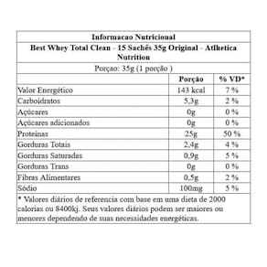 Best Whey Total Clean é um suplemento proteico de alta qualidade, formulado com três tipos de proteínas do soro do leite (WPC, WPI e WPH) e enzima lactase, que auxilia na digestão da lactose. Ideal para quem busca uma alimentação saudável e equilibrada, sem açúcar, corantes ou adoçantes artificiais. Com delicioso sabor de cookies & cream, Best Whey Total Clean é perfeito para consumir pré ou pós-treino, contribuindo para o ganho de massa muscular e a recuperação dos tecidos. Experimente e sinta a diferença!