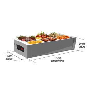 BUFFET TÉRMICO AQUECIDO INOX 6 CUBAS COM TAMPA: