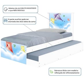 A Bicama Bibox Juvenil Adesivada é belíssima e conta com um design funcional, que ocupa pouco espaço no ambiente.