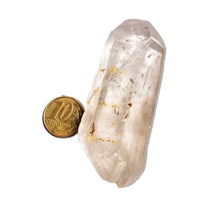 Descrição do Produto:\nNome da Pedra: Quartzo Gêmeo Bi Terminado (Bi Ponta) Cor da Pedra: Cristalino Hialino (translúcido) Corte: Sem lapidação, bruto natural, com ponta dupla Claridade da Pedra: Cristalizada, semi-transparente Medidas: 8 x 3 cm Peso da Pedra: 98 gramas Origem: Curvelo, Minas Gerais, Brasil\nObservação Importante: Por se tratar de uma pedra natural, a pedra que você receberá pode apresentar variações em suas tonalidades, grafismos e pequenas inclusões. Essas características são comuns em minerais autênticos de garimpo. A pedra foi apenas lavada para retirar a terra do garimpo. A hidratação deve ser feita com óleo mineral. Leia e entenda as propriedades deste mineral antes de comprar! Marca: CristaisdeCurvelo