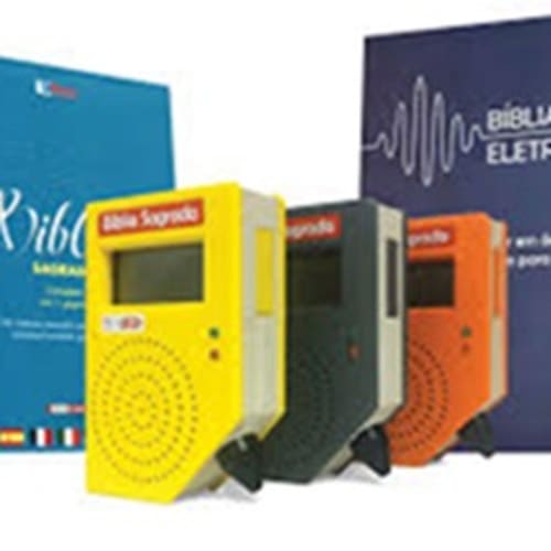 A Bíblia Eletrônica Terra é um dispositivo com conteúdo bíblico em áudio e material com braille físico, desenvolvido para facilitar o acesso por comandos simples, sem necessidade de internet, celular, aplicativo ou computador.