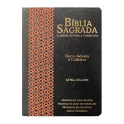 Bíblia gigante ppm arc full color c/ harpa pu luxo c/ borda dourada - Estrela preto e laranja