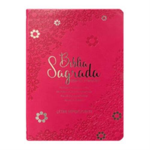 Bíblia hipergigante arc full color c/harpa pu luxo c/ índice dourada - Floral margarida pink