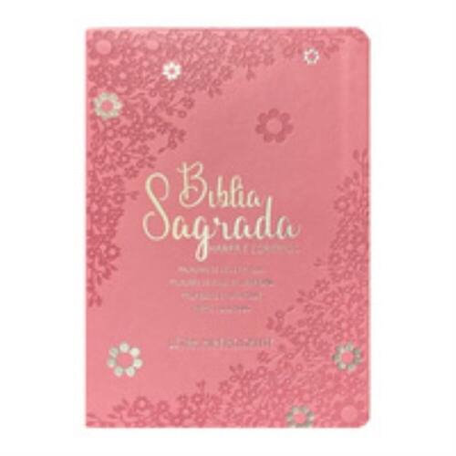 Bíblia hipergigante arc full color c/harpa pu luxo c/ índice dourada - Floral margarida rosa