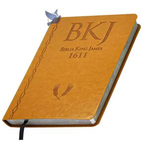 Bíblia Sagrada traduzida por King James, versão King James Fiel 1611. Capa Flexível em Material Sintético PU, cor Mostarda. Porte Médio, Ultrafina (Slim) ampliada, fácil de transportar na bolsa. Possui 758 páginas e páginas extras para anotações. Com Fita Marcadora de Páginas. Não é versão de Estudo. Bíblia Completa com Antigo e Novo Testamento.