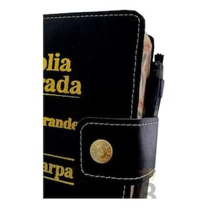 Bíblia Letra Grande Sagrada Com Caneta Tecido Harpa Floral
