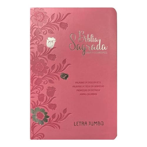 Bíblia Sagrada Gigante Letra Jumbo ARC Almeida Revista Corrigida com Harpa Capa Floral Rosa