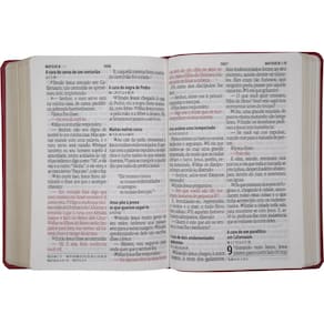 B1581 Medidas 20,50 x 14,00 x 4cm. Despacho Imediato em até 24 Horas. Bíblia Sagrada, traduzida por João Ferreira de Almeida, versão NAA Nova Almeida Atualizada. Capa Flexível em Material Sintético, na cor Rosa. Com Duas Fitas Marcadoras de Páginas. Possui 2.138 páginas, porte médio. Bíblia Completa com o Antigo e Novo Testamento. CARACTERÍSTICAS: Tradução: João Ferreira de Almeida Versão: NAA Nova Almeida Atualizada Idioma: português Beiras: Douradas Letra: Supergigante Capa Flexível em Material Sintético, cor Rosa Medidas: 20,50 x 14,00cm Porte Médio 2.138 páginas Completa: Antigo e Novo Testamento Sem Índice Sem Harpa RECURSOS: Letra Supergigante, Fácil de Ler Com Duas Fitas Marcadoras de Páginas Referências Bíblicas Palavras de Jesus em Vermelho Como Navegar na Bíblia Conteúdo da Bíblia Como Encontrar Ajuda na Bíblia Leitura Para Dias Especiais Plano de Evangelização Pessoal O que a Bíblia diz sobre o perdão de Deus Mapas SOBRE A BÍBLIA: Essa edição da Bíblia Sagrada é ideal para quem deseja ler a Palavra de Deus diariamente e procura um texto clássico, mas com linguagem atual. A Nova Almeida Atualizada (NAA) é uma tradução lançada em 2017 pela SBB, resultado de uma profunda revisão da consagrada tradução Almeida Revista e Atualizada. Ela apresenta um texto clássico com uma linguagem atual, seguindo a norma padrão do português escrito e falado no Brasil. O diferencial dessa Bíblia Sagrada é que ela possui letra Supergigante, um tamanho de fonte ampliado que torna a leitura mais fácil e confortável. Acompanha duas fitas marcadoras de páginas, que ajuda a identificar onde o leitor parou de ler ou para destacar informações importantes. As fitas marcadoras são ferramentas úteis para quem precise de uma maneira fácil de encontrar informações. Possui diversos recursos como: referências bíblicas; mapas; leitura para dias especiais; entre outros. Essa Bíblia é completa, com divisão de o Antigo e Novo Testamento, sendo o Antigo Testamento, o que conta a história do povo hebreu desde a criação do mundo até a conquista da terra prometida, e Novo Testamento, o que relata a vida e o ensinamento de Jesus Cristo, além do desenvolvimento da igreja cristã primitiva. Com Palavras de Jesus em Vermelho.