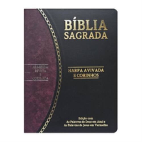 Bíblia slim large ARC com harpa PU bicolor - preto e vinho