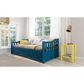 Bicama American em Madeira Maciça/MDF Azul. A Bicama American é impecável no acabamento, toda em laca e em madeira maciça com partes em MDF! Uma única peça pode ser usada como um confortável sofá e ainda como 2 camas solteiro. A Bicama American suporta até 90Kg cada cama, possui rodízios na cama auxiliar e acompanha um detalhado manual de montagem. - Medida Interna Cama Superior - 1910 x 900mm - Medida Interna Cama Inferior - 1870 x 900mm Um excelente custo-benefício com a vantagem de ser uma peça compacta e decorativa. Recomendações de Uso, Manutenção e Limpeza: Não armazenar ou utilizar o produto em locais com excesso de umidade. Para limpeza, não utilizar produtos químicos e abrasivos, usar apenas com pano umedecido, para garantir a maior durabilidade do móvel. Seguir rigorosamente as instruções de uso contidas no Manual de Montagem. Marca: Arbol Móveis