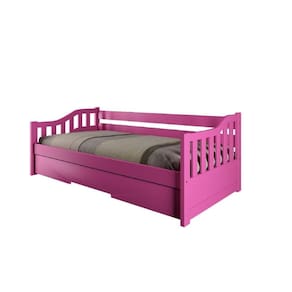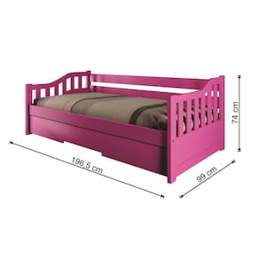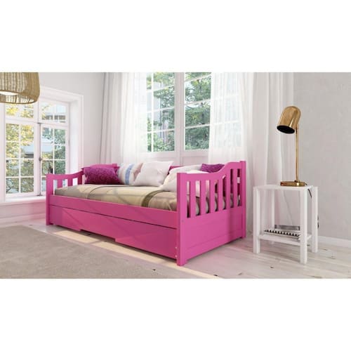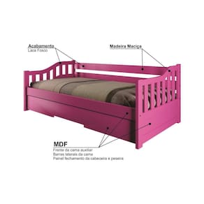 Bicama American em Madeira Maciça/MDF Rosa. A Bicama American é impecável no acabamento, toda em laca e em madeira maciça com partes em MDF! Uma única peça pode ser usada como um confortável sofá e ainda como 2 camas solteiro. A Bicama American suporta até 90Kg cada cama, possui rodízios na cama auxiliar e acompanha um detalhado manual de montagem. - Medida Interna Cama Superior - 1910 x 900mm - Medida Interna Cama Inferior - 1870 x 900mm Um excelente custo-benefício com a vantagem de ser uma peça compacta e decorativa. Recomendações de Uso, Manutenção e Limpeza: Não armazenar ou utilizar o produto em locais com excesso de umidade. Para limpeza, não utilizar produtos químicos e abrasivos, usar apenas com pano umedecido, para garantir a maior durabilidade do móvel. Seguir rigorosamente as instruções de uso contidas no Manual de Montagem. Marca: Arbol Móveis Ean: 7909903408988