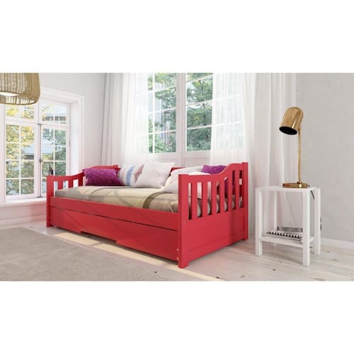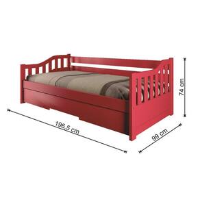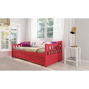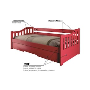 Bicama American em Madeira Maciça/MDF Vermelho. A Bicama American é impecável no acabamento, toda em laca e em madeira maciça com partes em MDF! Uma única peça pode ser usada como um confortável sofá e ainda como 2 camas solteiro. A Bicama American suporta até 90Kg cada cama, possui rodízios na cama auxiliar e acompanha um detalhado manual de montagem. - Medida Interna Cama Superior - 1910 x 900mm - Medida Interna Cama Inferior - 1870 x 900mm Um excelente custo-benefício com a vantagem de ser uma peça compacta e decorativa. Recomendações de Uso, Manutenção e Limpeza: Não armazenar ou utilizar o produto em locais com excesso de umidade. Para limpeza, não utilizar produtos químicos e abrasivos, usar apenas com pano umedecido, para garantir a maior durabilidade do móvel. Seguir rigorosamente as instruções de uso contidas no Manual de Montagem. Marca: Arbol Móveis Ean: 7909903409008