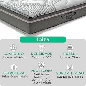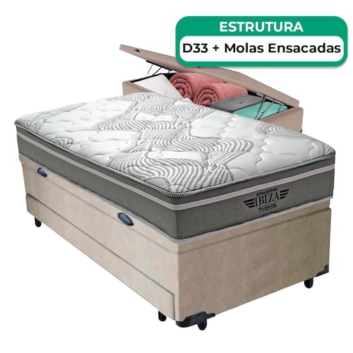 A tecnologia que a sua casa merece está na V-Store! O Conjunto Colchão Ibiza + Bicama com Cama Auxiliar e Baú da V-Store é a solução ideal para quem busca conforto, funcionalidade e praticidade. O colchão Ibiza, com Molas Ensacadas e espuma de alta performance, oferece suporte ideal e conforto intermediário, além de contar com proteção contra ácaros, fungos e alergias. A bicama combina uma cama auxiliar com espuma D28, perfeita para visitas, e um baú espaçoso para armazenamento de travesseiros, roupas de cama ou objetos pessoais, otimizando o espaço do seu quarto com elegância e organização. Transforme seu dormitório com estilo e aproveite noites ainda mais confortáveis. Verifique as dimensões para garantir compatibilidade com os acessos da sua residência.Característica Do Colchão: Modelo: IbizaMarca: V-StoreTamanho: SolteiroDimensões: 78x22x188 (Largura x Altura x Comprimento)Conforto: intermediárioSistema: Molas EnsacadasPillow: Não se aplicaPeso Máximo recomendado: 150 kg (Por pessoa)Proteções: Antiácaro, antialérgico, antifungo, antimofoGarantia: 12 Meses (Espuma) / 10 anos ( Conjunto de Molas Ensacadas)Característica Da Base: Marca: V-StoreModelo: Bicama com BaúTamanho: SolteiroDimensões: 78x44x188 (Largura x Altura x Comprimento)Estrutura: MadeiraPeso máximo recomendado: 150 kg (Por Pessoa)Altura do Box: 38 cmAltura dos Pés: 6 cmAltura total: 44 cmMedida Cama Auxiliar: 78x44x188 (LxAxC) cmGarantia: 12 Meses (Estrutura e Estofamento) / 3 Meses (Tecido)Selo Ecologicamente CorretoAtenção:- Antes de finalizar sua compra, recomendamos que verifique se as dimensões do produto são adequadas para serem transportadas pelos elevadores, portas, escadas e corredores de sua residência. Ressaltamos que não nos responsabilizamos pelo transporte do produto por meios específicos, como escadas, guinchos ou içamentos.- É possível que hajam leves variações de cor de acordo com o dispositivo que está sendo utilizado como smartphones, computadores, monitores e outros.
