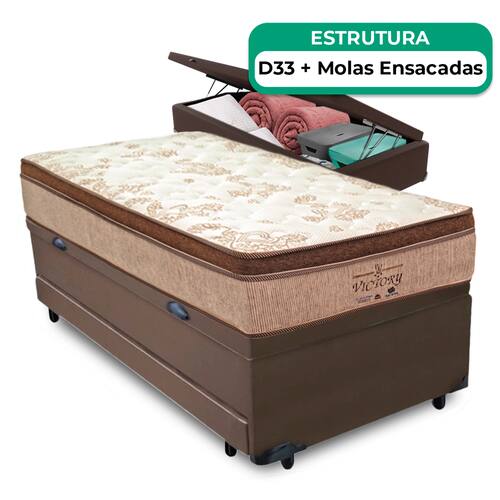 Bicama Baú + Colchão Victory Molas V-Store 88x188x74 - Marrom