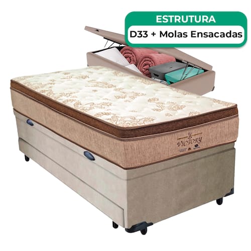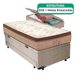 Bicama Baú Solteirão Colchão Victory Molas Vstore 96x188x30 - Bege