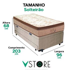 A tecnologia que a sua casa merece está na V-Store! A Cama Box Baú 3 em 1 da V-Store é a solução ideal para otimizar seu espaço e oferecer mais praticidade. Ela combina cama box, baú de armazenamento e cama auxiliar, perfeita para quem precisa de flexibilidade e organização no quarto. O colchão Victory Solteiro, com molas ensacadas, EPS para durabilidade e proteções contra ácaros e alergias, garante noites de sono confortáveis. A base revestida com tecido sintético é resistente e de fácil manutenção. Com capacidade para 150 kg por pessoa e garantia de 12 meses, essa cama versátil une conforto, funcionalidade e sofisticação para o seu dormitório.Característica Do Colchão: Modelo: VictoryMarca: V-StoreTamanho: SolteirãoDimensões: 96x30x203 (Largura x Altura x Comprimento)Conforto: MédioSistema: Molas EnsacadasPillow: Euro PillowPeso Máximo recomendado: 150 kg (Por pessoa)Proteções: Antiácaro, antialérgico, antifungo, antimofoGarantia: 12 Meses (Espuma) / 10 anos ( Conjunto de Molas Ensacadas)Característica Da Base: Marca: V-StoreModelo: Bicama com BaúCor do Box: BegeTamanho: SolteirãoDimensões: 96x44x203 (Largura x Altura x Comprimento)Estrutura: MadeiraPeso máximo recomendado: 150 kg (Por Pessoa)Altura do Box: 38 cmAltura dos Pés: 6 cmAltura total: 44 cmMedida Cama Auxiliar: 96x44x203 (LxAxC) cmGarantia: 12 Meses (Estrutura e Estofamento) / 3 Meses (Tecido)Selo Ecologicamente CorretoAtenção:- Antes de finalizar sua compra, recomendamos que verifique se as dimensões do produto são adequadas para serem transportadas pelos elevadores, portas, escadas e corredores de sua residência. Ressaltamos que não nos responsabilizamos pelo transporte do produto por meios específicos, como escadas, guinchos ou içamentos.- É possível que hajam leves variações de cor de acordo com o dispositivo que está sendo utilizado como smartphones, computadores, monitores e outros.