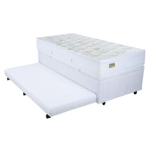 Colchão Mega Nanno Euro + Bicama Box Baú Mega 3 em 1 A linha Mega Nanno possui características que contribuem significativamente para o descanso do corpo e durabilidade do colchão. Sistema de encapsulamento do molejo - maior área útil e bordas mais resistentes Tecido em malha com toque super agradável, tratamento Biomax (Antiácaro, Antialérgico) Toda linha MEGA COLCHÕES possui o selo de qualidade BioFoam. Biofoam é uma espuma com consciência ecológica, contendo em sua formulação matéria prima vegetal que é obtida através de processos menos agressores. Desenvolvida para manter maior performance à espuma convencional. Este selo é a garantia que a sua compra tem a melhor qualidade com menor impacto à natureza. O planeta agradece. As futuras gerações também. Altura do Colchão: 23 cm Garantia: 01 ano. A Bicama Box Baú Mega Branco 3 em 1 é uma peça versátil que oferece conforto, comodidade e melhor aproveitamento de espaço. Possui baú interno para armazenamento de objetos, inclusive roupas de cama.( Pistão a Gás) Além de vir com cama auxiliar que já acompanha o colchão, ideal para hospedar visitas. Possui puxadores na frente do box para maior facilidade no manuseio e alça para segurar o colchão. Cama auxiliar: Possui um colchão de espuma D-28 agregado a estrutura que sai de dentro do box, aproveitando assim o espaço interno do produto, podendo oferecer mais uma opção de conforto para os hóspedes. São 03 pés com rodízio(rodinhas) e 03 pés fixo. Profundidade interna do baú 14 cm Altura do box 36 cm Altura dos pés 5 cm Colchão superior: 23cm Altura Total: 64 cm Foto Meramente ilustrativa
