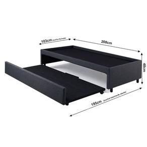 Bicama para dois colchões sendo o colchão superior Solteirão 96x203 (sem limite altura) e colchão auxiliar solteiro de 88x188 (com até 26cm de altura).
