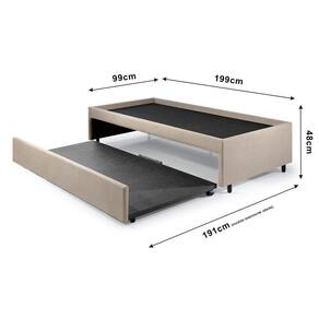 Bicama para dois colchões de Solteiro com medidas de 88x188 cm com até 26cm de altura (limite de altura apenas para cama auxiliar).