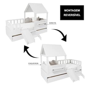 Diferenciais: Auxiliar com 4 rodízios, MDF Melamina 15mm, Estrados em Madeira Maciça, Casinha com Telhado, Kit escada/ escorregador, Grades Anatômicas (Todas as Grades são Removíveis)