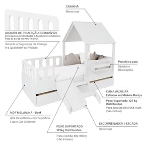 Material Principal: MDF | Cor Predominante: Branco | Necessita Montagem: Sim | Acompanha Colchão: Não | Tipo de Cama: Solteiro | Cor: