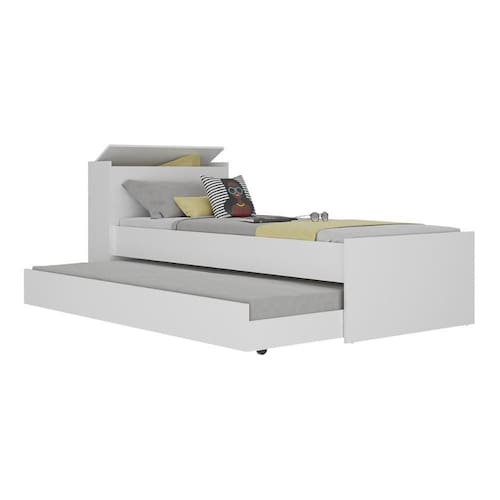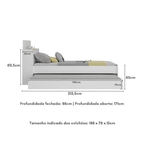 Bicama Com Baú Embutido Para Colchão 78x188cm Cookie Multimóveis Bb5009 Branco Branco Aproveite ao máximo o seu espaço com a incrível Bicama com Baú Embutido para Colchão 78x188cm Cookie Multimóveis BB5009. Solução perfeita para otimizar o seu ambiente, esta bicama multifuncional oferece conforto e praticidade sem abrir mão do estilo. - Produzida em MDP (15mm). - Acabamento acetinado (cerca de 20% de brilho). - Suporta até 100kg na cama principal e até 70kg na cama auxiliar. - Rodízios: facilitam a movimentação da cama auxiliar e a limpeza do ambiente. - Baú embutido na cabeceira: amplo espaço para guardar roupas de cama e outros pertences. - Pode ser montada tanto do lado esquerdo quanto do direito, adaptando-se às suas necessidades. - NÃO acompanha colchões (tamanho indicado dos colchões: 188x78 cm).