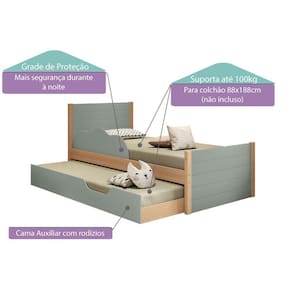Proporcione conforto e espaço para as crianças com essa linda Bicama Infantil. A Bicama conta com proteção lateral com bordas arredondadas na cama superior, e uma cama auxiliar com rodízios e travas. Aproveite de forma divertida e inteligente os espaços do quarto. Acompanha Cama Auxiliar: Sim Acompanha Colchão: Não Altura do Estrado até o Chão: 34 Ambiente Principal: Quarto Infantil Cama Auxiliar Acompanha Colchão: Não Cama Auxiliar com Rodízio: Sim Cama Auxiliar Suporta Até (kg): 100 Complexidade da Montagem: Alta: deve ser montado por um montador especializado Cor: Menta/Marrom Cor do Produto: Menta/Marrom Escala de Brilho: Semi-Fosco Itens Inclusos: 1 Cama, Kit Ferragens e Manual de Montagem Manual de Montagem e Instalação: https://cdn2.madeiramadeira.com.br/prd/cimol/1241468-7908308727304.pdf Material do Estrado: Compensado Multilaminado Material Principal: MDF Necessita Montagem: Sim Origem do Produto: Nacional Permite a Utilização de Cama Auxiliar: Sim Peso: 46 Possui Baú: Não Possui Gavetas: Não Possui Pés: Não Possui Portas: Não Possui Prateleiras: Não Recomendações de Uso, Manutenção e Limpeza: Na limpeza não utilizar produtos químicos e abrasivos, usar apenas um pano umedecido, para garantir a maior durabilidade do móvel. Sistema de Montagem: Parafusos Suporta Até (kg): 100 Tamanho do Colchão Indicado (L x C): 88cm x 188cm Tamanho do Colchão Indicado Cama Auxiliar: 88cm x 188cm Tipo de Cama: Bicama Tipo de Colchão: Solteiro Tipo de Estrado: Fixo