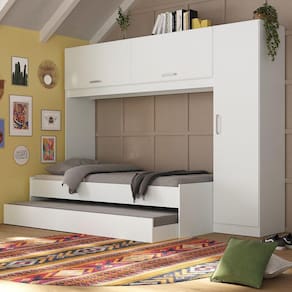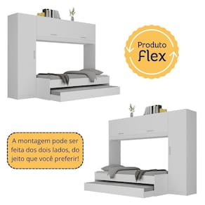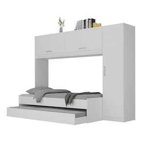 A Bicama com Guarda-Roupas para colchão 88 x 188 cm Multimóveis FG2691 é produzida em MDP com acabamento em pintura UV, oferecendo durabilidade e resistência. A bicama conta com barras em MDF e lastro em madeira, garantindo estabilidade e conforto durante o sono, suporta até 90kg na cama principal e até 60kg na cama auxiliar (possui rodízios que facilitam sua movimentação). Com puxadores em ABS e cabideiro metálico, o guarda-roupas conta com 1 porta lateral, 2 portas basculantes superiores e prateleiras internas, possuindo amplo espaço interno para acomodar roupas e acessórios e permitindo uma organização impecável para o seu quarto. Versátil, a porta lateral pode ser montada dos dois lados - esquerdo ou direito. Com um design moderno e funcionalidade ímpar, este conjunto é ideal para quem busca praticidade e estilo. NÃO acompanha colchões (tamanho indicado dos colchões: Principal - 188 x 88 cm | Auxiliar - 188 x 78 cm).