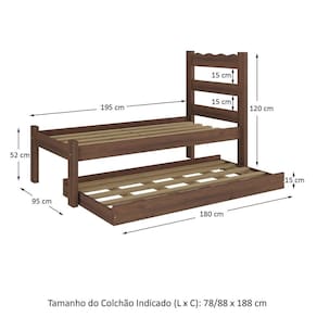 Colchões: Não acompanha. Indicado tamanho 78/88x188cm.