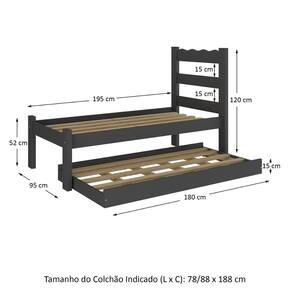 Especificações Técnicas: Altura: 120cm | Largura: 95cm | Comprimento: 195cm Material: Madeira Maciça de Pinus de Reflorestamento Capacidade de Peso: Até 110kg por cama Colchões: Não acompanha. Indicado tamanho 78/88x188cm.