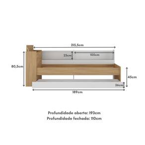 Dimensões do produto montado: Bicama - Altura: 80,5cm | Largura: 215,5cm | Profundidade: 110,5cm (fechada) - 193,5cm (aberta) Colchões - Altura: 12cm | Largura: 188cm | Profundidade: 78cm *Você pode consultar as medidas detalhadas na imagem técnica do produto.