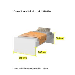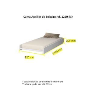 Bicama De Solteiro Ilan Branco * Imagens meramente ilustrativas. Estrado da cama na horizontal e totalmente reforçado: super resistente. Para colchões de solteiro padrão 88x188cm. - compacta; - estrado super reforçado; Acompanha cama turca ref. 1329 e cama auxiliar ref. 1250. DIMENSÕES DO PRODUTO MONTADO: ALTURA 60 CM LARGURA 95 CM PROFUNDIDADE 193 CM Manual de montagem disponível no site do fabricante. Atenção: Não nos responsabilizamos, no ato da , por desmontagens, subir escadas/elevadores ou transporte por guincho para apartamentos. Eventuais despesas são de responsabilidade do cliente. Confira as dimensões deste produto e certifique-se de que o mesmo passará normalmente por supostos elevadores, portas, escadas e/ou corredores de sua moradia.
