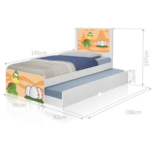 A Bicama Bibox Juvenil Barcelona Adesivada Dinossauro Baby é belíssima e conta com um design funcional, que ocupa pouco espaço no ambiente.