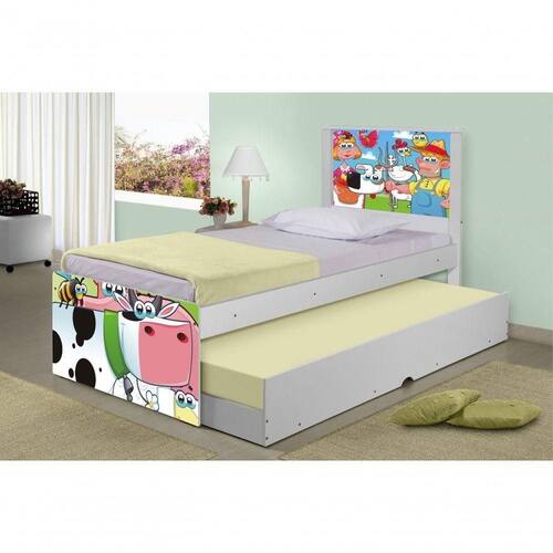 Bicama Juvenil Barcelona Adesivada Fazendinha Feliz com 2 Colchões - Branco