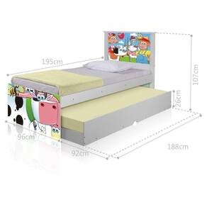 A Bicama Juvenil Barcelona Adesivada Fazendinha Feliz é belíssima e conta com um design funcional, que ocupa pouco espaço no ambiente.