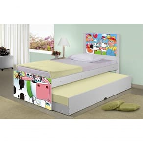 A Bicama Juvenil Barcelona Adesivada Fazendinha Feliz é belíssima e conta com um design funcional, que ocupa pouco espaço no ambiente. A Coleção Fazendinha Feliz foi desenvolvida por nossos designers oferecendo um visual exclusivo, descontraído e divertido ao ambiente. A cama auxiliar fica embaixo da principal e basta puxá-la por meio das corrediças para começar a fazer dela. É ideal para quartos pequenos e para caso precise de uma cama extra para receber um amigo, ou divida o dormitório com alguém. Feita em MDF e MDP e seu acabamento é feito com pintura UV brilhante tornando-a um produto resistente e com aspecto de novo por muito mais tempo. É uma excelente escolha para acomodar colchões de solteiro na medida de 188 cm x 88 cm de largura.